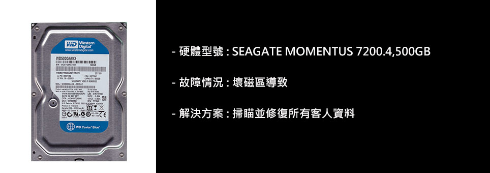 - 應立刻停止供電,以免刮花碟面導致將資料無法恢復,並馬上交給我們進行救援。