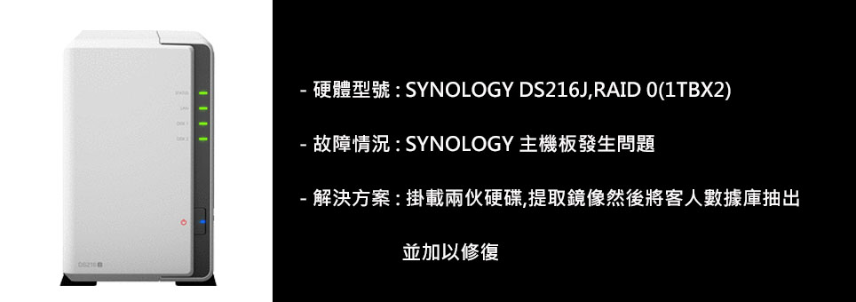- 應立刻停止供電,以免刮花碟面導致將資料無法恢復,並馬上交給我們進行救援。